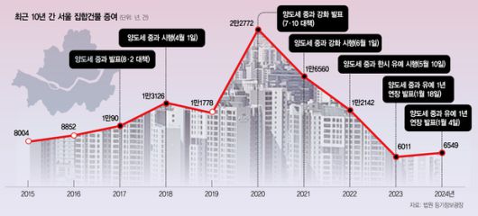 25일 법원 등기정보광장에 따르면 다주택자에 대한 양도세 중과가 신설 및 강화된 2017·2018·2020년에는 서울 집합건물(아파트 등) 증여가 역대 최고를 기록했다. 반면 양도세 중과를 유예하기 시작한 2022년부터는 증여가 대폭 줄어들었다.