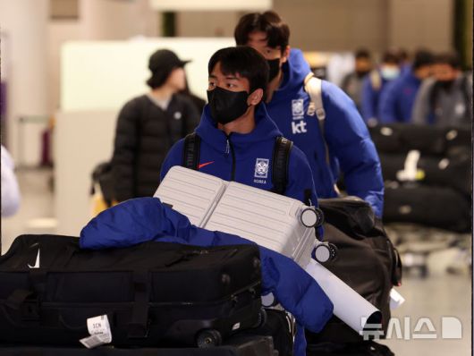 [인천공항=뉴시스] 이영환 기자 = 한국 23세 이하(U-23) 대표팀 선수들이 25일 인천국제공항 제1여객터미널을 통해 귀국하고 있다.