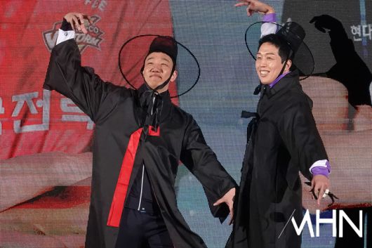 행사에 앞서 선수단은 각자 귀여운 머리띠와 코스튬 세리머니를 선보여 팬들을 즐겁게 했다. 특히 팬 투표수 1위에 빛나는 올스타전 베테랑 신영석(한국전력)과 최민호(현대캐피탈)는 '케이팝 데몬 헌터스'의 저승사자 의상을 입고 나와 시선을 끌었다.