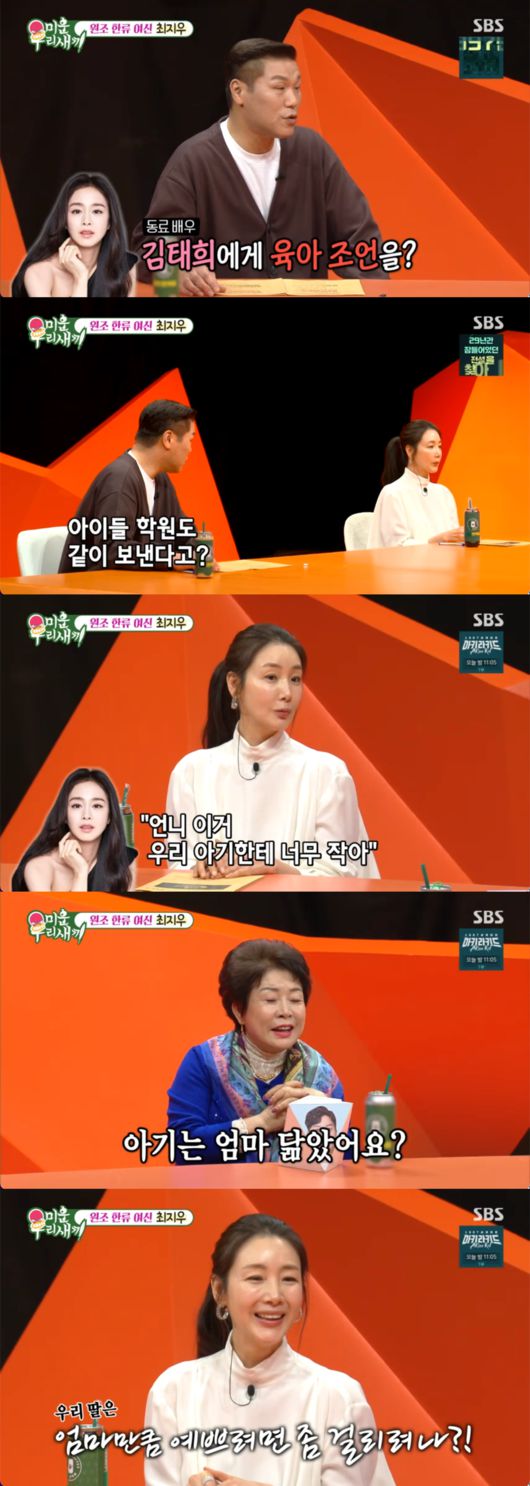 [OSEN=박근희 기자] '미운 우리 새끼’ 배우 최지우가 무려 46세에 첫 출산을 했던 비하인드 스토리와 함께 톱스타 김태희와의 끈끈한 육아 우정을 공개했다.