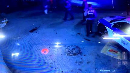 어두운 밤, 가게 앞에 순찰차가 멈춰 서더니 경찰관들이 내려 다급히 뛰어갑니다.