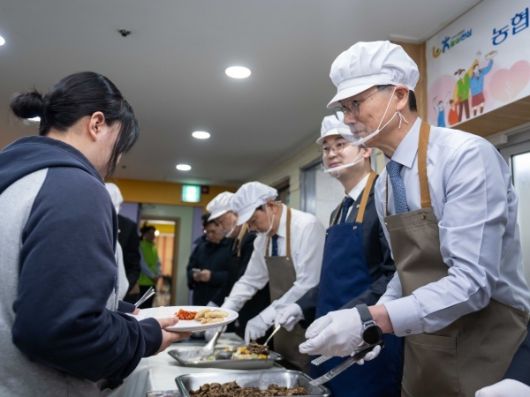 인더뉴스 문승현 기자ㅣNH농협은행(은행장 강태영)은 23일 서대문 구세군 서울후생원에서 시설 거주 아동·청소년의 건강한 성장을 돕기 위해 3억원 상당의 국내산 김치를 전달했다. 이날 행사에는 강태영 농협은행장, 김동아 국회의원(서대문갑), 김병윤 구세군 사령관, 임세빈 농협은행 수석부행장, 변성환 농협은행 서울본부장이 함께 급식배식봉사에도 참여했다.