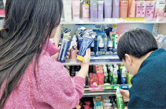 다이소지난 16일 서울의 한 다이소 매장에서 20대 고객들이 탈모 케어 제품들을 살펴보고 있다.