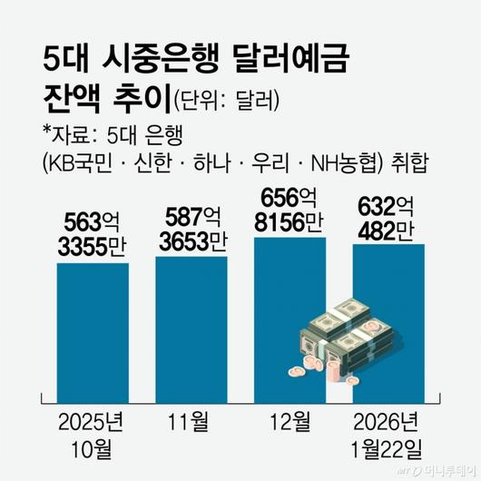 5대 시중은행 달러예금 잔액 추이/그래픽=임종철 |