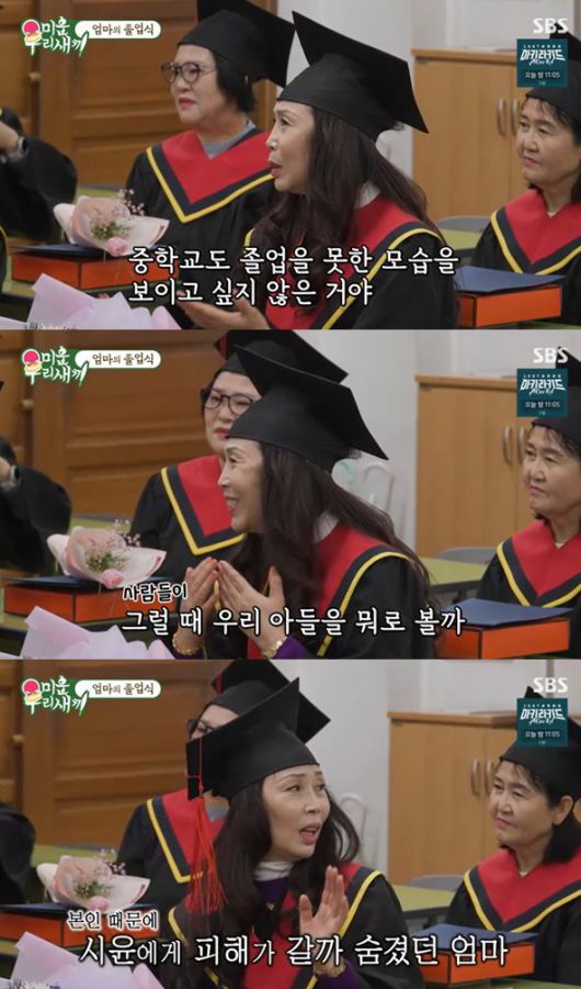 그는 이어 "중학교도 졸업하지 못했던 내 모습을 먼저 보여주고 싶지 않았다"며 "사람들이 그럴 때 우리 아들을 어떻게 볼까 걱정돼 숨겼다. 나 자신은 전혀 창피하지 않았다"고 밝혀 뭉클함을 안겼다.