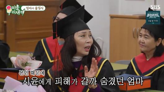 이후 윤시윤은 "엄마가 공부를 얼마나 못했을지 궁금했는데, 졸업자 명단에서 엄마 이름을 보고 울컥했다"며 "순서가 성적순인가 싶었다"고 말해 웃음을 자아냈다.