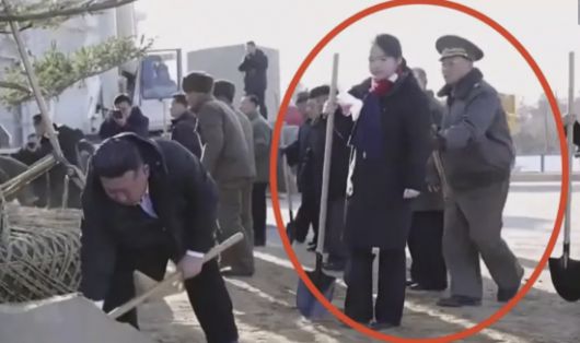 이후 리설주 여사와 주변 인물들이 제지하는 모습이 담겼고, 다음 화면에서는 김주애가 김 위원장 앞으로 이동해 삽질에 참여했다.