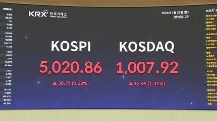 네, 지난주 금요일 4,990포인트로 마감했던 코스피는 개장 직후 5천 선을 다시 돌파했습니다.