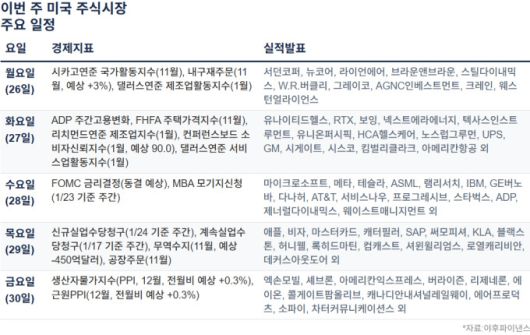 [서울=뉴스핌] 이홍규 기자 = 지난주 그린란드 사태발 급등락을 오간 미국 주식시장이 이번 주에는 빅테크 실적과 연방준비제도(연준)의 통화정책 발표라는 굵직한 일정을 마주한다.