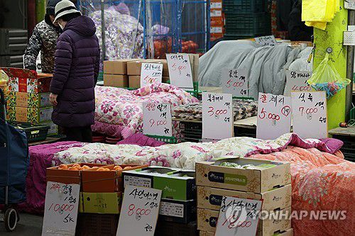 (서울=연합뉴스) 류효림 기자 = 한파가 이어지고 있는 26일 서울 양천구의 한 전통시장 점포에서 과일과 채소류를 이불로 덮고 있다. 2026.1.26