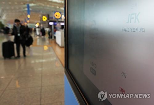 (영종도=연합뉴스) 신준희 기자 = 26일 인천국제공항 2터미널 출국장에 폭설로 인한 미국행 항공기 지연 안내가 표출돼 있다. 2026.1.26 hama@yna.co.kr ▶제보는 카카오톡 okjebo▶연합뉴스 앱 지금 바로 다운받기~▶네이버 연합뉴스 채널 구독하기 <저작권자(c) 연합뉴스, 무단 전재-재배포, AI 학습 및 활용 금지><저작권자(c)연합뉴스. 무단전재-재배포금지.>