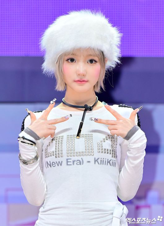 (엑스포츠뉴스 김한준 기자) 26일 오후 서울 광장동 예스24라이브홀에서 그룹 키키(지유 이솔 수이 하음 키야 / KiiiKiii) 미니 2집 '델룰루 팩(Delulu Pack)' 쇼케이스가 진행됐다. 이날 쇼케이스에 참석한 키키 지유가 포즈를 취하고 있다.김한준 기자 kowel@xportsnews.com