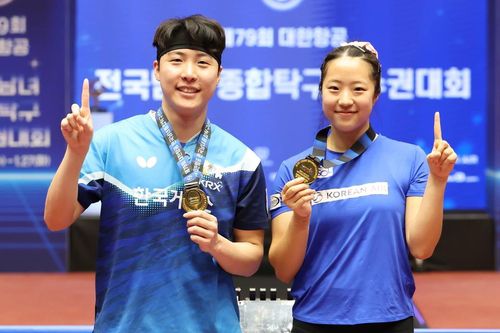(제천=연합뉴스) 이동칠 기자 = 탁구 세계랭킹 2위 콤비인 임종훈(한국거래소)-신유빈(대한항공) 조가 처음 출전한 제79회 종합선수권대회에서 정상에 올랐다.
