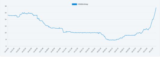 리튬 가격은 2022년 11월 ㎏당 71.2달러까지 치솟은 뒤, 전기차 수요 둔화와 공급 과잉으로 지난해 6월 사상 최저치인 7.8달러까지 하락한 바 있다. 그러나 지난해 연말을 기점으로 반등에 들어서며 최근에는 연일 상승 흐름을 이어가고 있다.