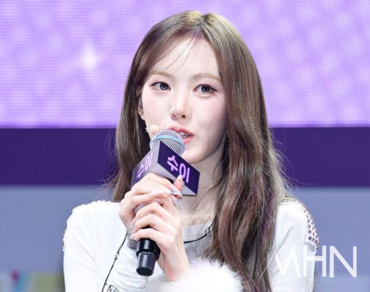 (MHN 이지숙 기자) 그룹 키키(KiiiKiii) 수이가 26일 오후 서울 광진구 예스24라이브홀에서 열린 미니 2집 '델룰루 팩(Delulu Pack)' 발매 기념 쇼케이스에서 질의응답 시간을 가지고 있다.