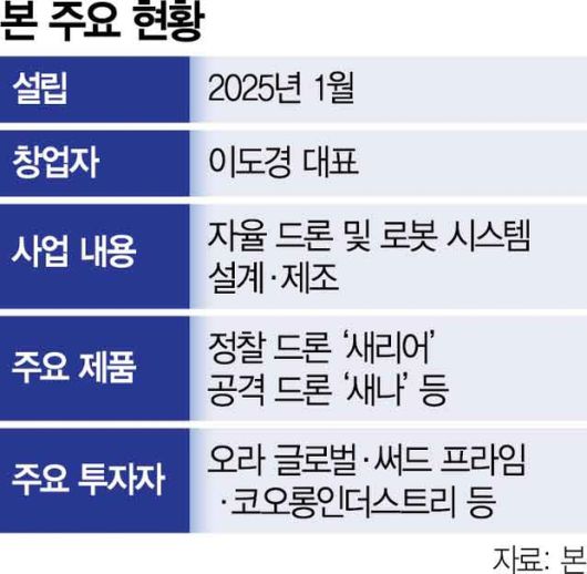 현재 본은 드론을 바탕으로 민수와 방산을 아우르는 ‘듀얼유즈(Dual-Use)’ 기술을 내세우고 있다. 정보·정찰·감시(ISR) 드론인 ‘새리어’와 공격용 군집 드론인 ‘새나’가 대표 제품이다. 지난해 국내 드론 기업 디메이커스를 인수해 제조 역량을 내재화했으며 AI 기술을 바탕으로 자율비행 시스템 고도화에 주력하고 있다.