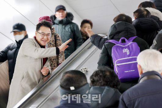 [이데일리 김태형 기자] 오언석 도봉구청장이 23일 창동역 2번출구 에스컬레이터 개통식에서 주민들과 인사를 나누고 있다.
