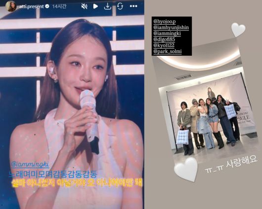 강민경 역시 송혜교, 박솔미 등과 공연을 마치고 찍은 사진을 공개하며 "사랑해요"라고 덧붙이며 돈독한 애정을 표현했다.