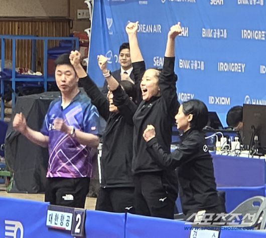 '한국탁구 레전드' 주세혁 감독이 이끄는 대한항공은 26일 충북 제천체육관에서 펼쳐진 여자탁구 단체전에서 '난적' 포스코인터내셔널을 매치 스코어 3대2로 꺾고 우승했다.