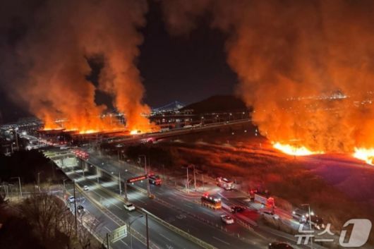 지난 24일 울산 북구 명촌교 일대 억새밭에서 동시다발적인 화재가 발생한 모습. /사진=뉴스1(독자 제공) |