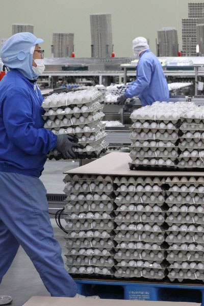 계란 수급 불안 대비 ‘미국산 신선란’ 26일 천안시 서북구 입장면의 한 수입업체에서 직원들이 계란 수급 불안에 대비해 정부가 수입한 미국산 신선란을 선별하고 세척·포장하는 등 제품화 작업을 하고 있다. 이번 수입란은 농림축산식품부가 고병원성 조류인플루엔자(AI) 확산에 따른 수급 불안에 수입한 미국산 신선란 224만개의 일부이다. 연합뉴스 |