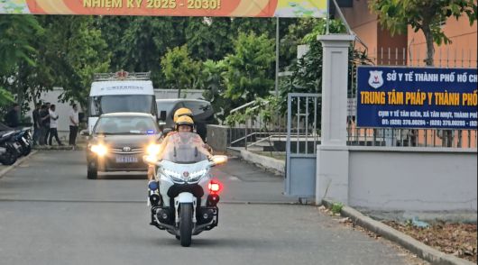 베트남 경찰이 오토바이들로 운구 차량 행렬을 호위해 원활히 공항으로 이동하도록 도왔다.