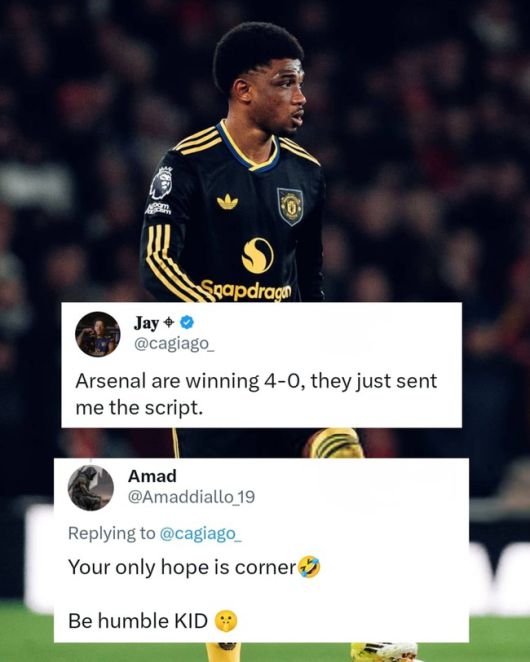 경기 직후 아마드 디알로와 아스널 팬의 SNS 설전이 화제를 모았다. 영국 '커트오프사이드'는 "아마드는 아스널전 극적인 승리를 거둔 직후 SNS에서 아스널 팬에게 바로 응수했다. 경기 전 한 아스널 팬이 '아스널이 4-0으로 이긴다. 이미 스크립트를 받았다'라고 SNS에 글을 올렸다. 그러나 맨유의 승리로 끝나자, 아마드는 경기 결과 그래픽과 함께 '즐겨라 꼬마야'라고 해당 글에 캡션을 달았다"라고 보도했다.