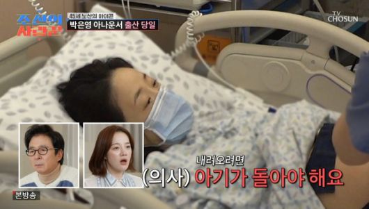 의료진은 "아기가 벌써 내려와있다. 아기가 이미 보인다"고 했고, 박은영은 남편에게 "아기가 보인데"라며 기뻐했다.