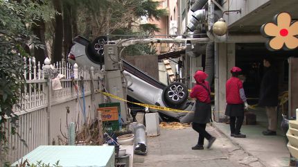 차가 떨어질 당시에 오가는 사람이 없어서 다행히 운전자 외에 다친 사람은 없었습니다.