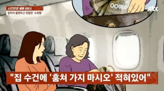 A씨에 따르면 그의 어머니는 식당에 가면 이쑤시개와 사탕 등을 주머니에 잔뜩 넣어 오고, 목욕탕에 가면 꼭 수건을 챙겨 온다고. 심지어 어머니는 비행기 탈 때 기내 담요를 몰래 챙기기도 했다.