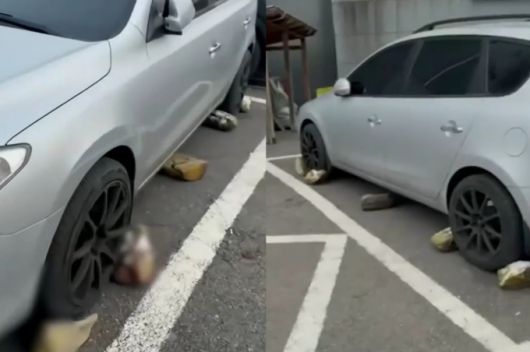A씨가 공개한 사진과 영상에는 주차된 차량 바퀴를 중심으로 큰 돌들이 자리하고 있었다. 이 돌들은 접착제로 바닥에 붙어버린 상태였다고 한다. A씨는 "연락처도 가려져 있어 경찰이 출동했고, 처음엔 현장에서 원만히 해결하자는 분위기였다"며 "하지만 문제의 당사자를 보자 경찰이 '그냥 사건 처리하자'며 재물손괴로 접수했다"고 했다.