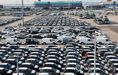 평택항에서 수출 대기 중인 자동차[연합뉴스 자료사진] ▶제보는 카카오톡 okjebo▶연합뉴스 앱 지금 바로 다운받기~▶네이버 연합뉴스 채널 구독하기<저작권자(c) 연합뉴스, 무단 전재-재배포, AI 학습 및 활용 금지>