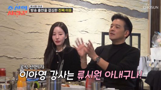 이아영은 "'이제 공개하는 거냐'는 연락을 많이 받았다"고 밝혔다. 류시원은 "아내를 공개하고 싶었다. 아내가 친구 만나러 가면 연락처 물어보는 남자가 많다. 걱정은 없지만 너무 많아서 신경 쓰인다. 이아영 강사는 류시원 아내라는 게 알리고 싶었다"고 공개 이유를 설명했다.