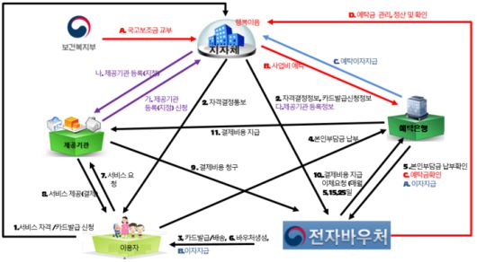 사회서비스 전자바우처 운영·비용 지급 절차도(자료=한국사회보장정보원)