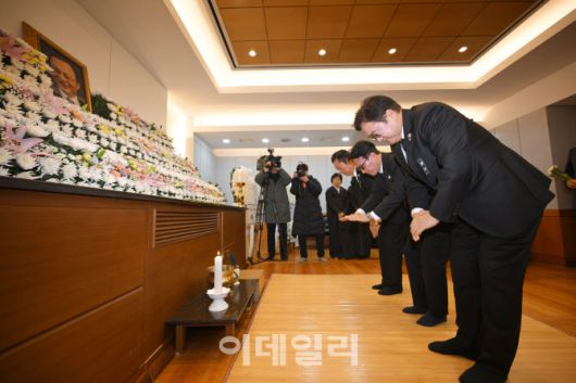 [이데일리 방인권 기자] 우원식(오른쪽부터) 국회의장, 김민석 국무총리, 정청래 더불어민주당 대표와 이 27일 오전 서울 종로구 서울대학교병원 장례식장에 故 이해찬 전 국무총리의 빈소에서 조문하고 있다.