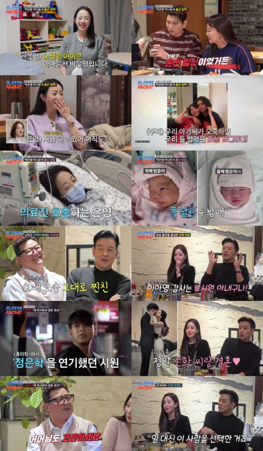 류시원의 아내는 “(엄마가) 제가 어렸지만, 엄마 하이힐 신고 핸드백 메고 다니면서 ‘은학 씨’랑 결혼할 거라 했다”며 류시원이 남자주인공 ‘정은학’으로 출연했던 1998년 주말 드라마 ‘종이학’에 대한 추억을 끄집어냈다. 이어 처가의 걱정속에 첫 상견례를 한 이야기를 털어놓으며, 류시원은 “지금은 누구보다 나를 응원해 주신다”고 밝혔다. 윤정수도 장인·장모가 ‘전처(?)’ 김숙과 결혼하지 않았냐며 너스레를 떤 일화와 함께 “그때 처음으로 화냈다”고 밝혀 웃음을 유발했다.