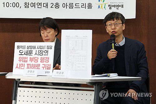 (서울=연합뉴스) 류효림 기자 = 이강훈 변호사가 27일 서울 종로구 참여연대에서 열린 세운4구역 관련 서울시 공익감사청구 기자회견에서 감사 청구 취지를 설명하고 있다. 2026.1.27