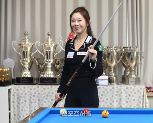 ‘LPBA 우승과 윤곡상 대상 의미’를 비교해 묻자 “(LPBA는) 당구인 사이에서 1등한 것이다. 윤곡상은 우리나라를 대표하는 여성 체육 중 가장 좋은 상을 받는 것이니 레벨이 다르지 않느냐”고 미소 지었다. 그는 “최대한 높은 곳까지 가보겠다. 또 여성 당구인으로 저변 확대를 위해 후배를 양성하는 것도 게을리하지 않겠다”고 다짐했다.