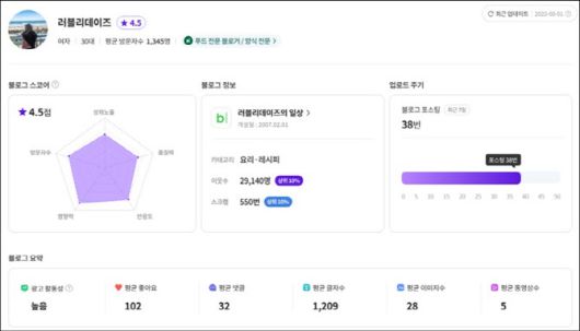 레뷰는 매일 수만 개의 블로그와 수십만 건의 포스트 데이터를 수집·분석해 최신 데이터를 기반으로 블로그 스코어를 산출하고 있다. 자체 개발한 AI 기반 분석 기술을 통해 포스트 내 주요 키워드와 검색 경쟁도를 평가하고, 블로그의 영향력·콘텐츠 완성도·활동성 등을 다각도로 분석해 광고 성과와 연결 가능성이 높은 인플루언서를 식별한다. 평가 결과는 5점 만점 기준 0.5점 단위로 제공된다.