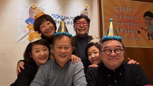 사진 속에는 올해 60살이 된 1957년 생인 송승환과 김수철의 합동 생일파티가 담겨있다. 절친 양희은, 이성미, 김혜영, 최유라와의 화기애애한 분위기가 훈훈함을 자아낸다.