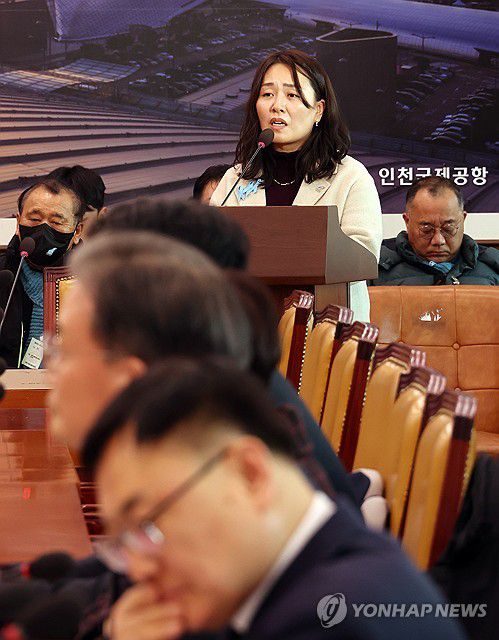 (서울=연합뉴스) 배재만 기자 = 27일 국회에서 열린 12.29 여객기 참사 진상규명을 위한 국정조사특위 전체 회의에서 김유진 유가족 협의회 대표가 발언하고 있다. 2026.1.27
