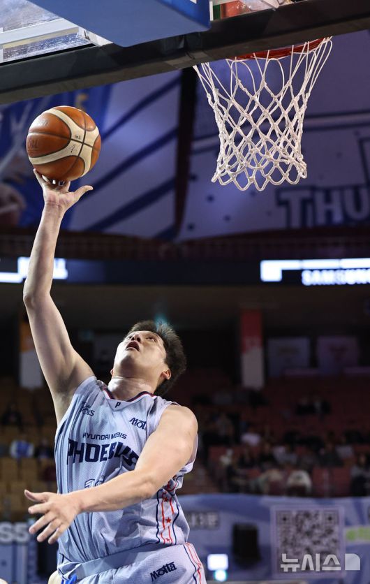 [서울=뉴시스] 최진석 기자 = 3일 서울 송파구 잠실실내체육관에서 열린 2025-2026 KBL 프로농구 울산 현대모비스와 서울 삼성의 경기, 현대모비스 함지훈이 레이업슛을 하고 있다. 2025.11.03. myjs@newsis.com |