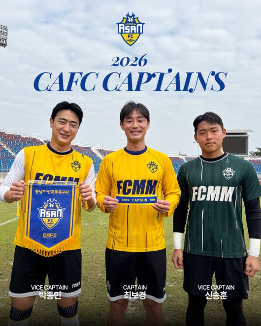 [인터풋볼=신동훈 기자] 충남아산프로축구단(구단주 오세현, 대표이사 이준일, 이하 충남아산FC)이 2026시즌을 새롭게 이끌어갈 주장단을 발표했다. 주장에는 최보경, 부주장에는 박종민, 신송훈이 낙점됐다.
