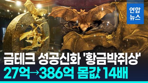 (서울=연합뉴스) 천정부지로 치솟는 국내 금 가격이 역대 최고가를 경신하면서 순금(24k)으로 제작된 전남 함평의 대표 조형물 황금박쥐상의 '몸값' 또한 14배나 껑충 뛰었습니다.