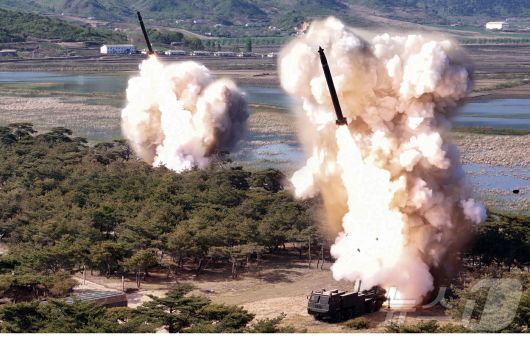 (평양 노동신문=뉴스1) = 북한의 탄도미사일 발사 장면. [국내에서만 사용가능. 재배포 금지. DB 금지. For Use Only in the Republic of Korea. Redistribution Prohibited] rodongphoto@news1.kr |