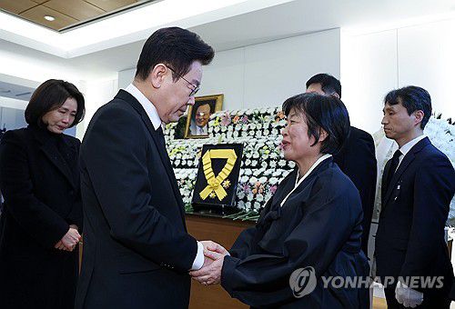 (서울=연합뉴스) 한상균 기자 = 이재명 대통령이 27일 서울 종로구 서울대병원 장례식장 고 이해찬 전 국무총리 빈소에서 유가족을 위로하고 있다. 2026.1.27