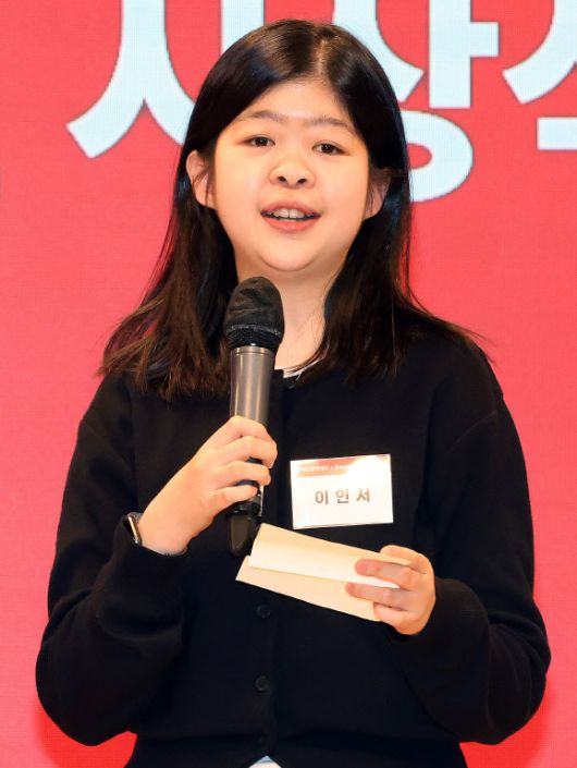 이인서 씨가 27일 서울 중구 KG타워에서 열린 곽재선문화재단 ‘제4회 마하 아트 공모전 시상식’에서 대상을 수상한 뒤, 수상 소감을 말하고 있다(사진=방인권 기자). |