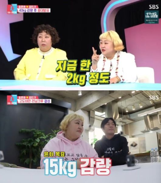 이에 그치지 않고 홍윤화는 지난해 '동상이몽2'에서 "제 인생의 마지막 다이어트를 결심했다"며 40kg를 감량하겠다고 선언했고, 연말에 22kg까지 감량했던 그는 결국 목표를 이뤘다.