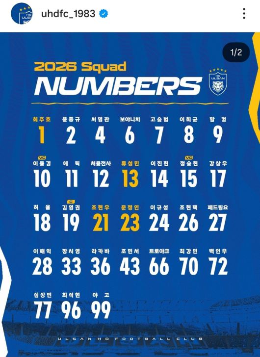 2026시즌 울산HD 스쿼드 등번호. 사진 | 울산HD 소셜미디어 |