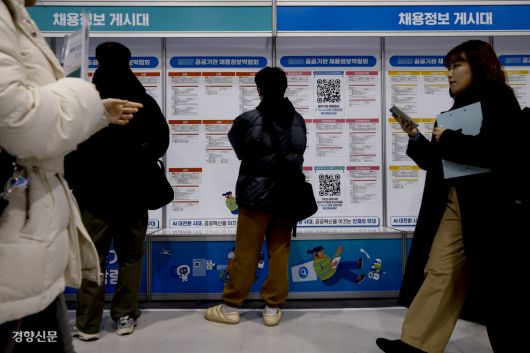 27일 서울 서초구 양재aT센터에서 열린 2026 공공기관 채용정보 박람회를 찾은 시민들이 채용정보를 살펴보고 있다.문재원 기자 mjw@kyunghyang.com▶ 매일 라이브 경향티비, 재밌고 효과빠른 시사 소화제!▶ 더보기|이 뉴스, 여기서 끝나지 않습니다 → 점선면©경향신문(www.khan.co.kr), 무단전재 및 재배포 금지